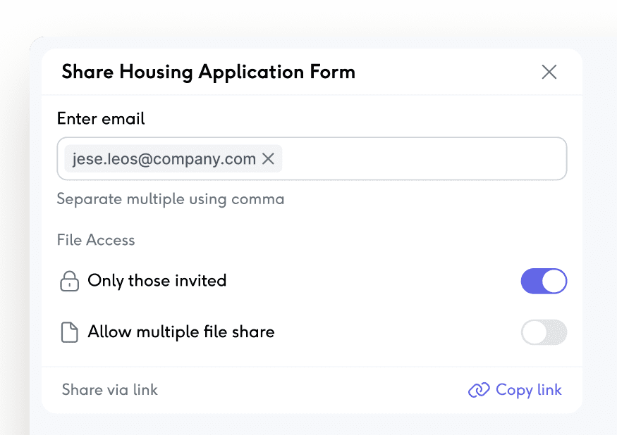 Send forms via secure links or direct invites with full control.