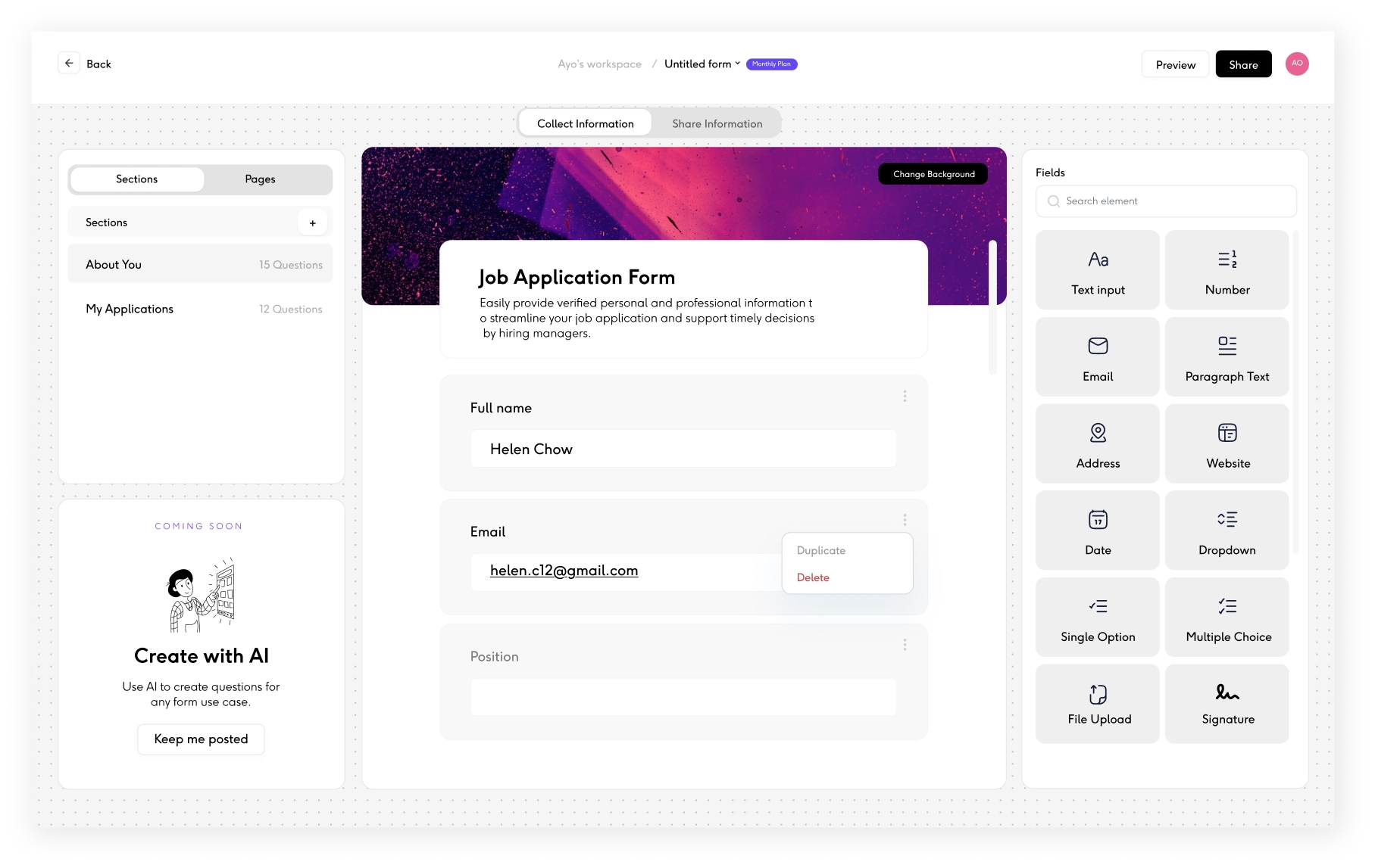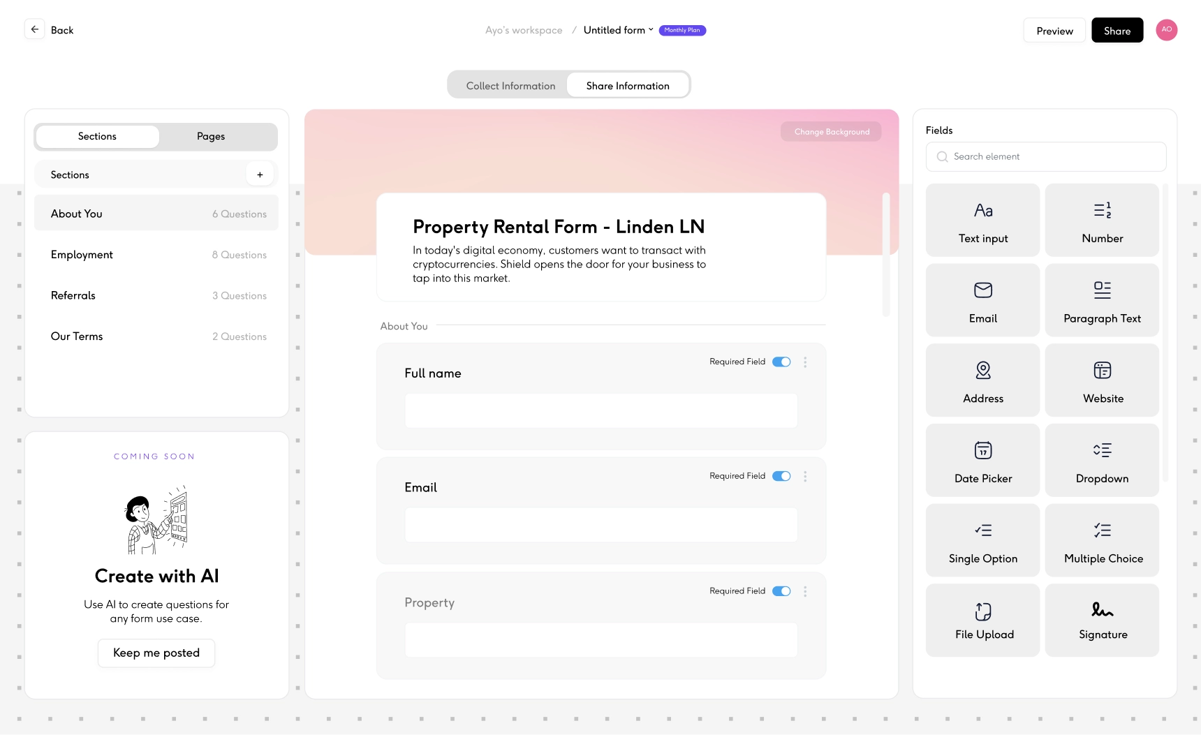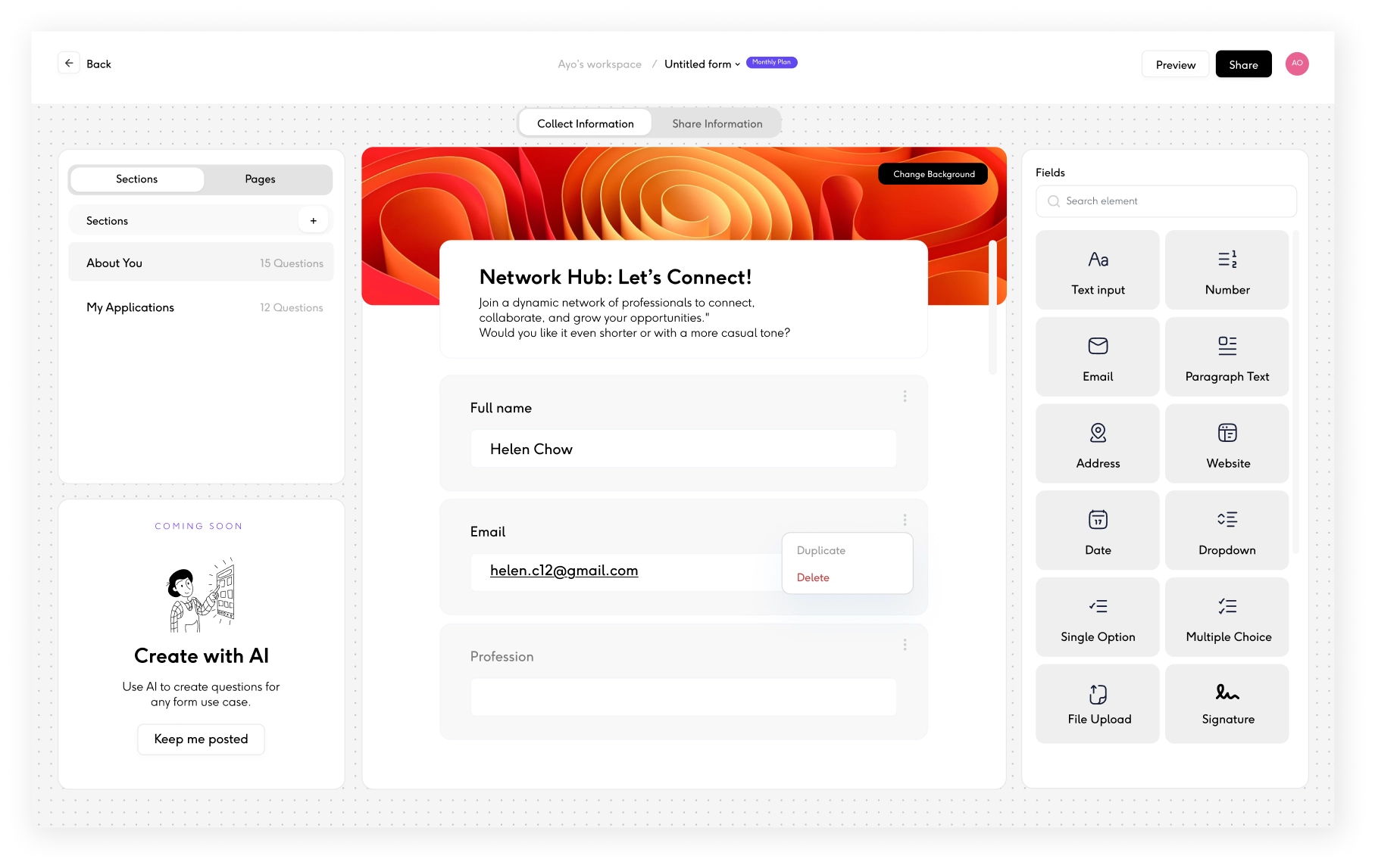 Build from scratch or select from pre-designed templates and customize them to suit your needs. Whether you’re collecting applications, onboarding details, or documents, templates help you get started fast, without building from scratch.